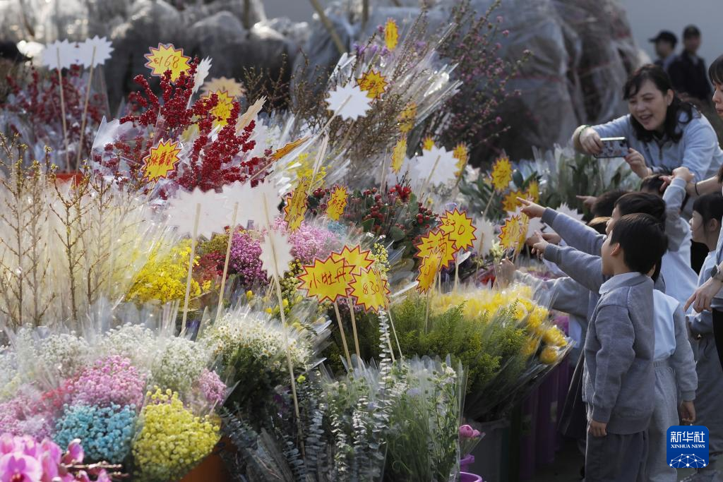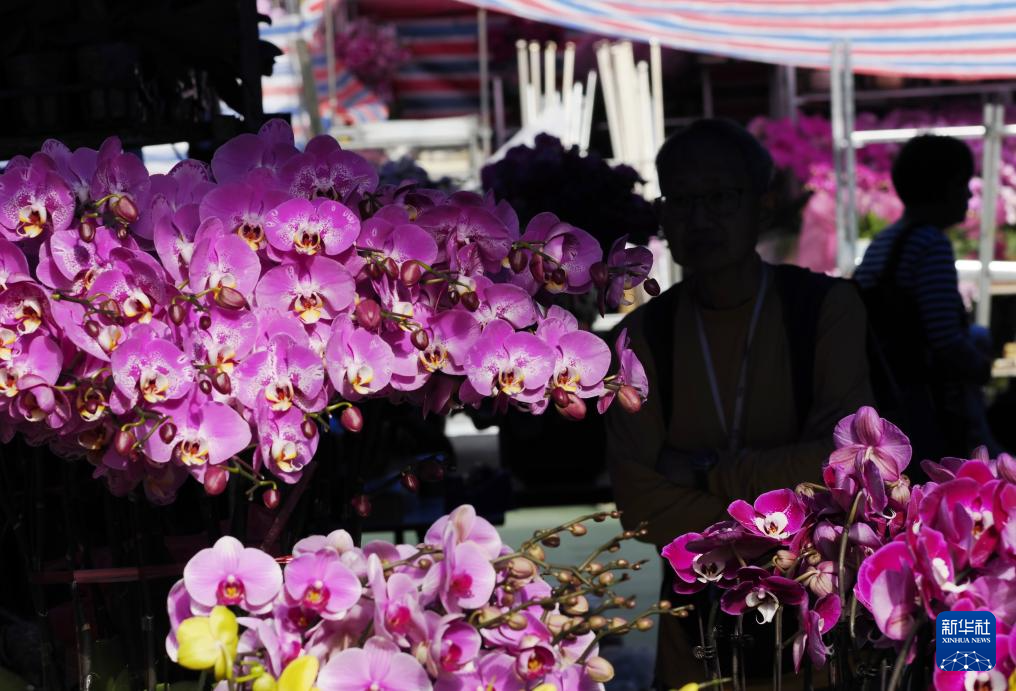 2月11日,在香港維多利亞公園,市民在購買年花。新華社發(王申 攝)