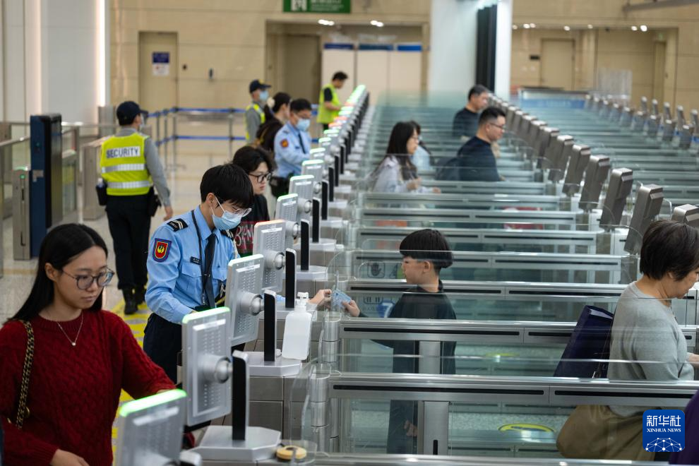 2月18日,旅客有序通過橫琴口岸澳門口岸區離境通道。 新華社發(張金加攝)