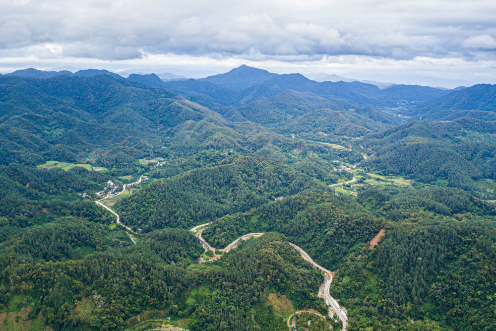 這是2025年7月22日在海南省保亭黎族苗族自治縣毛感鄉拍攝的熱帶雨林及蜿蜒其中的環熱帶雨林國家公園旅遊公路(無人機照片)。新華社記者 蒲曉旭 攝