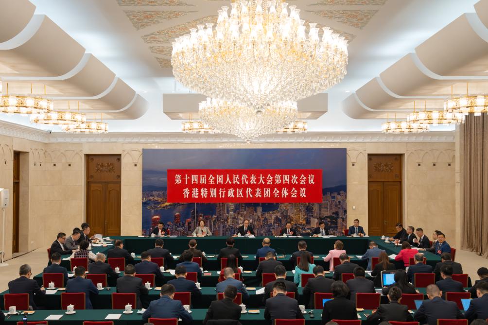 3月8日,十四屆全國人大四次會議香港代表團舉行開放團組會議。新華社記者 李明剛 攝