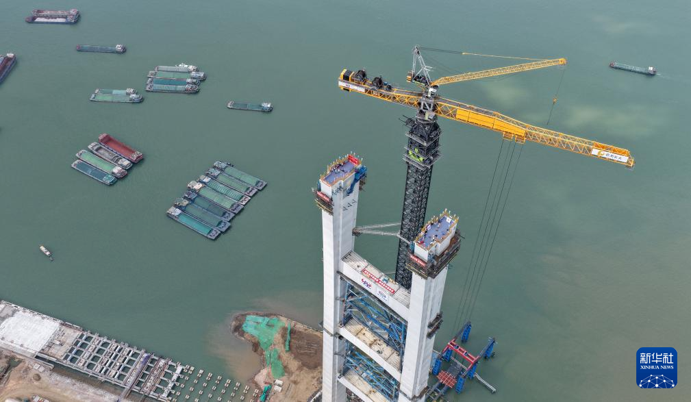 3月26日,粵港澳大灣區超級工程獅子洋大橋實現東、西主塔封頂,塔高342米,相當於110層樓的高度。
