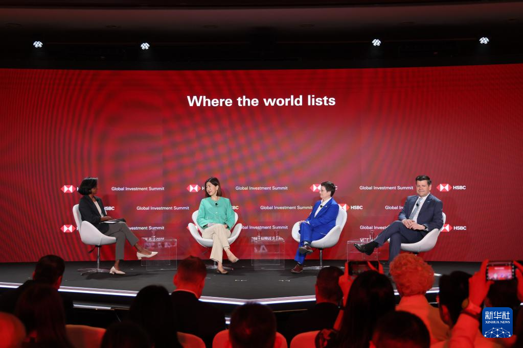 港交所行政總裁陳翊庭(左二)出席滙豐全球投資峰會(4月15日攝)。新華社發