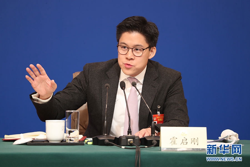 全國政協十三屆二次會議3月10日(星期日)上午8:45在梅地亞兩會新聞中心舉行記者會,邀請5位政協委員就「新時代政協履職」回答記者提問。新華網、中國政府網進行現場直播。圖為全國政協委員、中國香港體育協會暨奧林匹克委員會副會長、霍英東集團副總裁霍啟剛。新華網/中國政府網 陳傑攝
