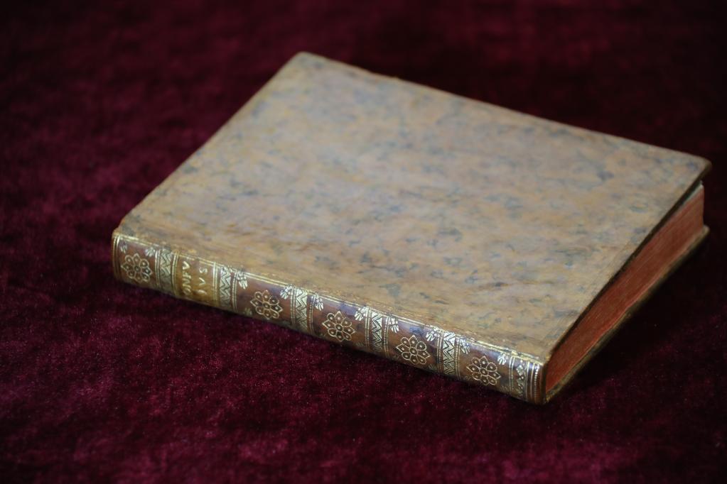 牛皮封面、飄口燙金、染紋紙環襯、書口刷紅……這是一本富有法國啟蒙時期書籍裝幀特徵的珍貴典籍,但其記載的內容,卻是2000多年前中國的政治主張、倫理思想、道德觀念。