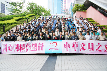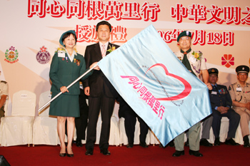 本網訊 2006年7月18日,500多名來自港澳與內地的青少年聚首香港歷史博物館,參加「同心同根萬里行2006——中華文明之旅」內地考察交流團授旗禮。中央政府駐港聯絡辦副主任李剛和特區政府民政事務局局長何志平擔任授旗禮的主禮嘉賓。