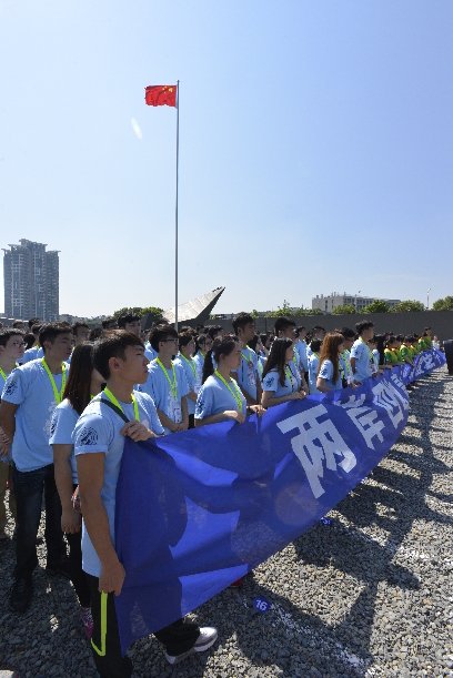 本網訊 為紀念中國人民抗日戰爭暨世界反法西斯戰爭勝利70周年,增強青年學生的國家、民族觀念,7月29日上午,香港、澳門、台灣及內地1000 餘名青年學生在侵華日軍南京大屠殺遇難同胞紀念館共同舉行了「相聚國旗下」活動。