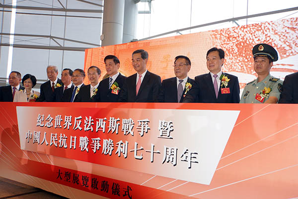 本網訊 8月10日,「歷史不能忘記,嘉庚精神永存」大型圖片展覽啟動儀式在香港會展中心舉行,中央政府駐港聯絡辦副主任林武出席並主禮。展覽由福建僑聯、香港福建社團聯會、香港晉江社團總會聯合舉辦,主要反映了陳嘉庚先生及東南亞華僑在抗日戰爭中的愛國精神和巨大貢獻。香港特區行政長官梁振英、中國僑聯主席林軍、福建省政協主席張昌平共同主禮,閩籍社團領袖、社會各界人士共500餘人出席並觀看展覽,緬懷先烈。