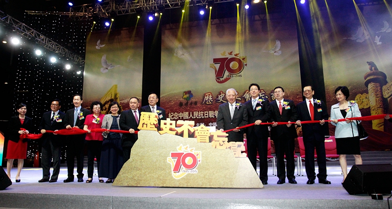 本網訊 8月12日,「親情中華▪歷史不會忘記」紀念中國人民抗日戰爭暨世界反法西斯戰爭勝利70周年大型文藝晚會在九龍灣國際展貿中心舉行。中央政府駐港聯絡辦主任張曉明與全國政協副主席董建華、中國僑聯主席林軍、外交部駐港特派員公署副特派員宋如安、特區政府民政事務局副局長許曉暉、香港僑界社團聯會會長余國春等出席並主禮。包括僑界在內的香港社會各界人士近3000人觀看晚會。