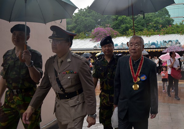 8月30日,原東江縱隊港九獨立大隊老戰士黃立光(右一)出席巡游。新華社記者 何靖嘉 攝