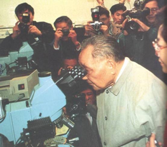 1992年2月10日鄧小平參觀上海貝嶺微電子製造有限公司。