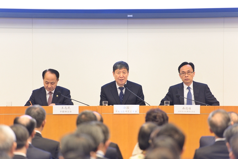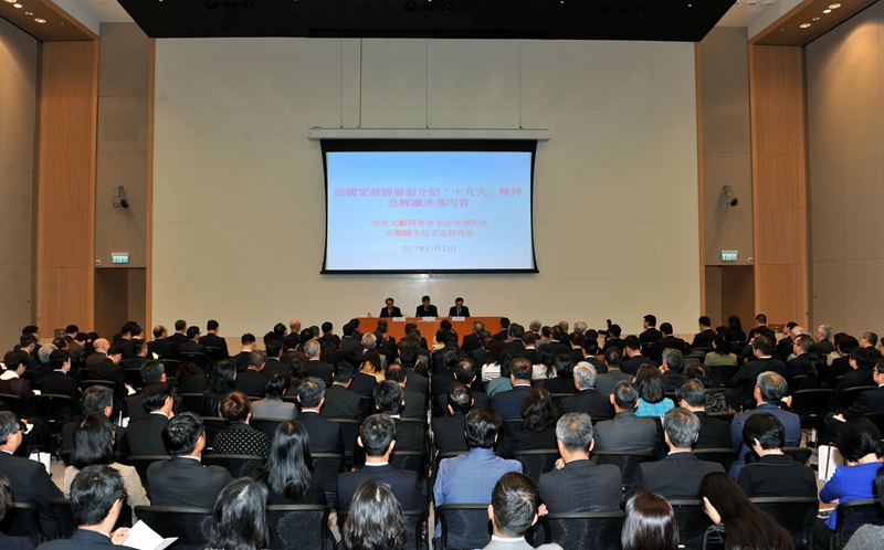 本網訊 11月23日上午,中央宣講團成員、中央文獻研究室主任冷溶與我辦主任王志民應邀為特區政府高級官員宣講十九大精神。