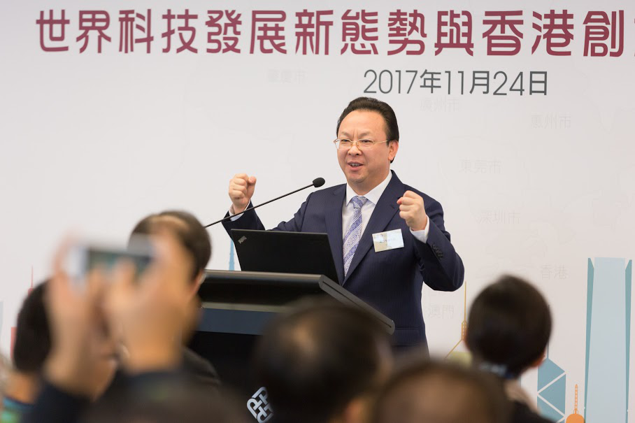 譚鐵牛闡述了世界科技發展的歷史和新態勢,中國科技發展的新形勢及香港創科面臨的新機遇。他還向現場師生宣講了十九大精神,並着重解讀十九大報告關於科技創新的重要論述。