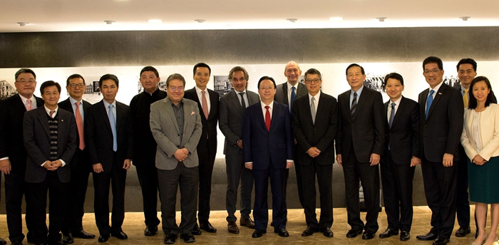 譚鐵牛副主任與香港總商會主要領導層合影。(圖片來源:中央政府駐港聯絡辦)