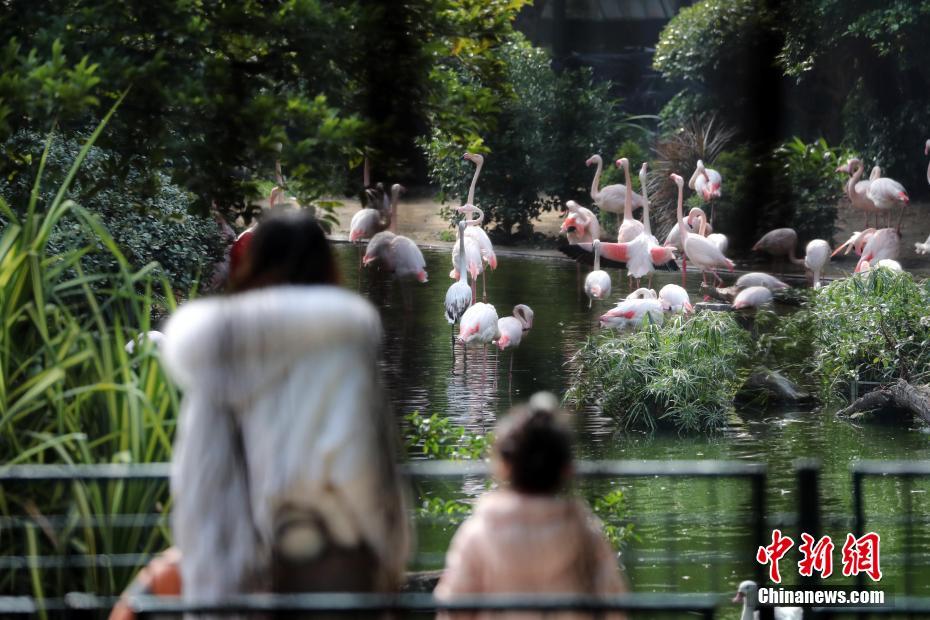1月23日,游客在觀賞火烈鳥清洗羽毛,姿態優美。香港九龍公園是九龍區最大的公園之一,擁有一大片綠油油的樹林,吸引大量鳥類棲息。除了樹木外,九龍公園還有多個噴水池、一個鳥湖和一個中式的庭院。鳥湖包括大型紅鸛池塘和較小的水禽池塘。兩個池塘均遍植花木,合共飼養了約6個不同品種的130多只雀鳥,其中以大小紅鸛最引人注目。鳥湖現已成功繁殖了大紅鸛。這個遠離繁華鬧市的和諧生態園,吸引許多市民和游客。中新社記者 洪少葵 攝