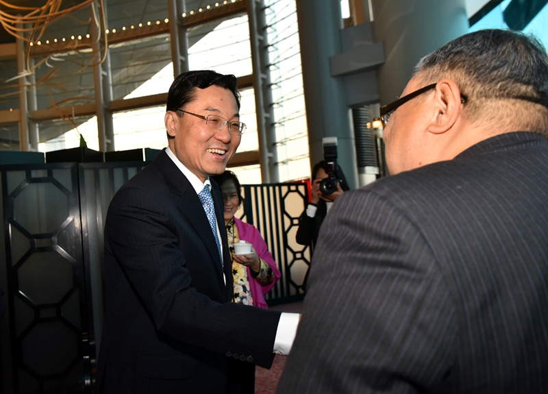 外交部駐港特派員公署特派員謝鋒與來賓交談。(圖片來源:中央政府駐港聯絡辦)
