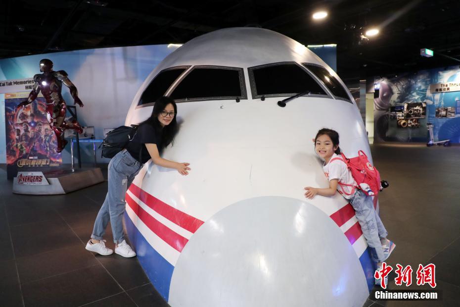 4月29日,游客蒞臨香港航空探知館參觀。香港航空探知館位於香港國際機場二號客運大樓,是以航空為主題的多媒體中心,設有多個展區,逾20多項多媒體互動設施,介紹世界民用航空事業、前啟德機場及新香港國際機場的發展。中新社記者 洪少葵 攝
