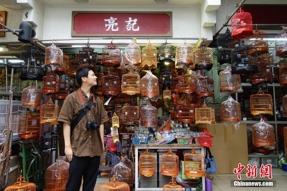 花園內除休憩設施外,幾十個店舖一個挨着一個,形成長長的店舖走廊,這些店舖基本上是當年「雀仔街」的商販搬遷而來。除了售賣雀鳥,店舖也出售雀籠、雀鳥飼料等。中新社記者 張煒 攝