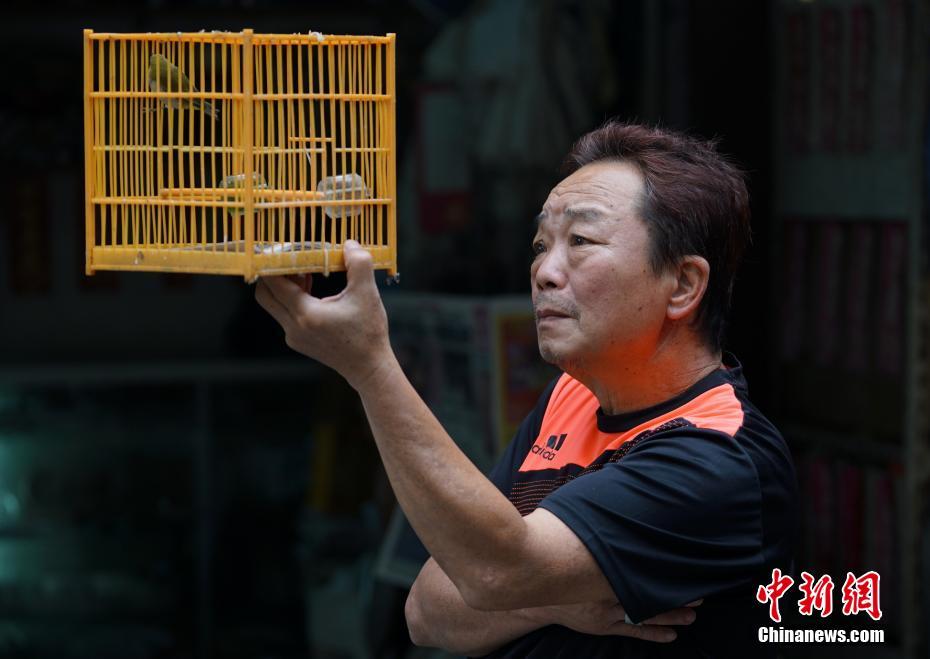 一名香港愛雀人士仔細端詳剛剛購買的雀鳥。中新社記者 張煒 攝