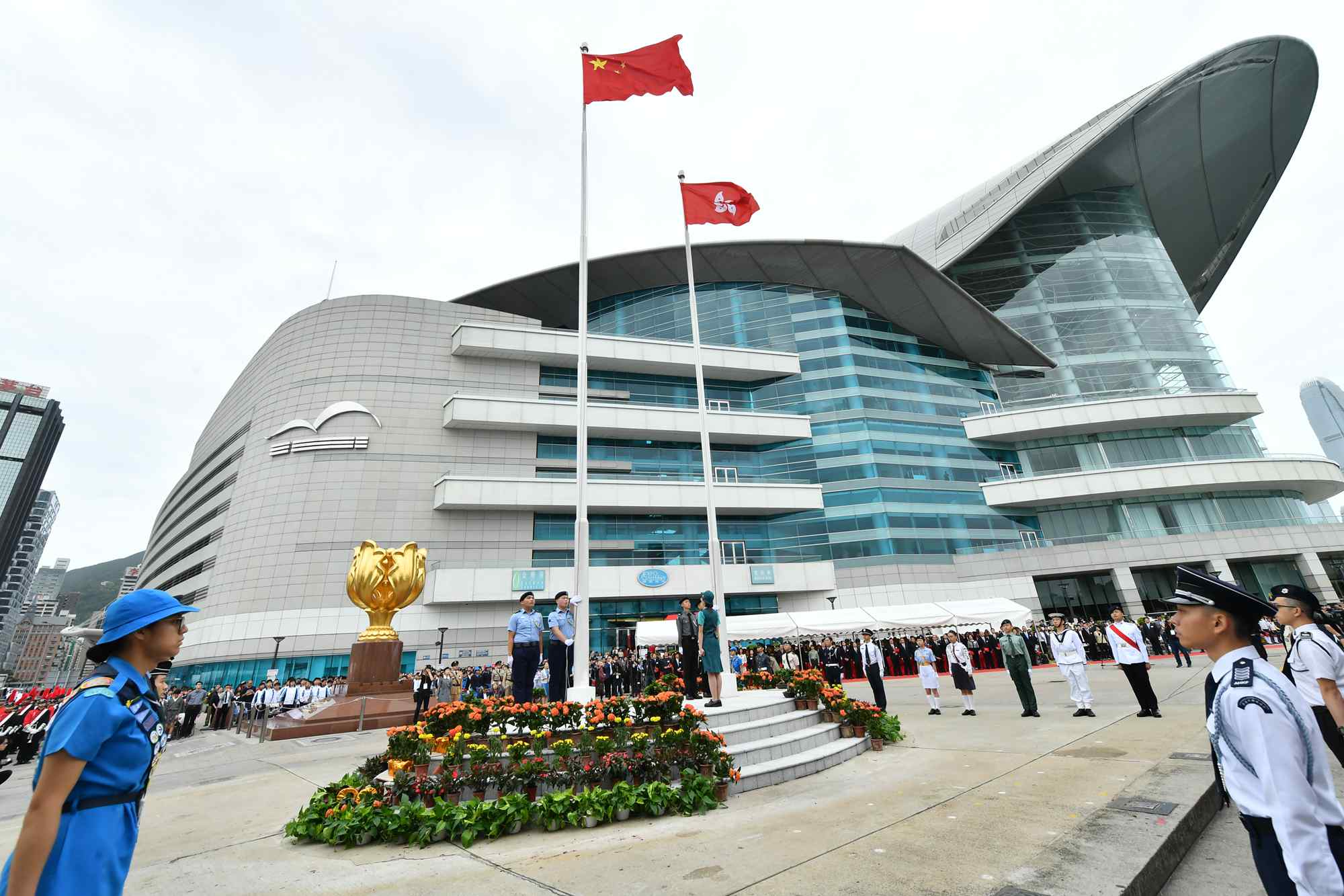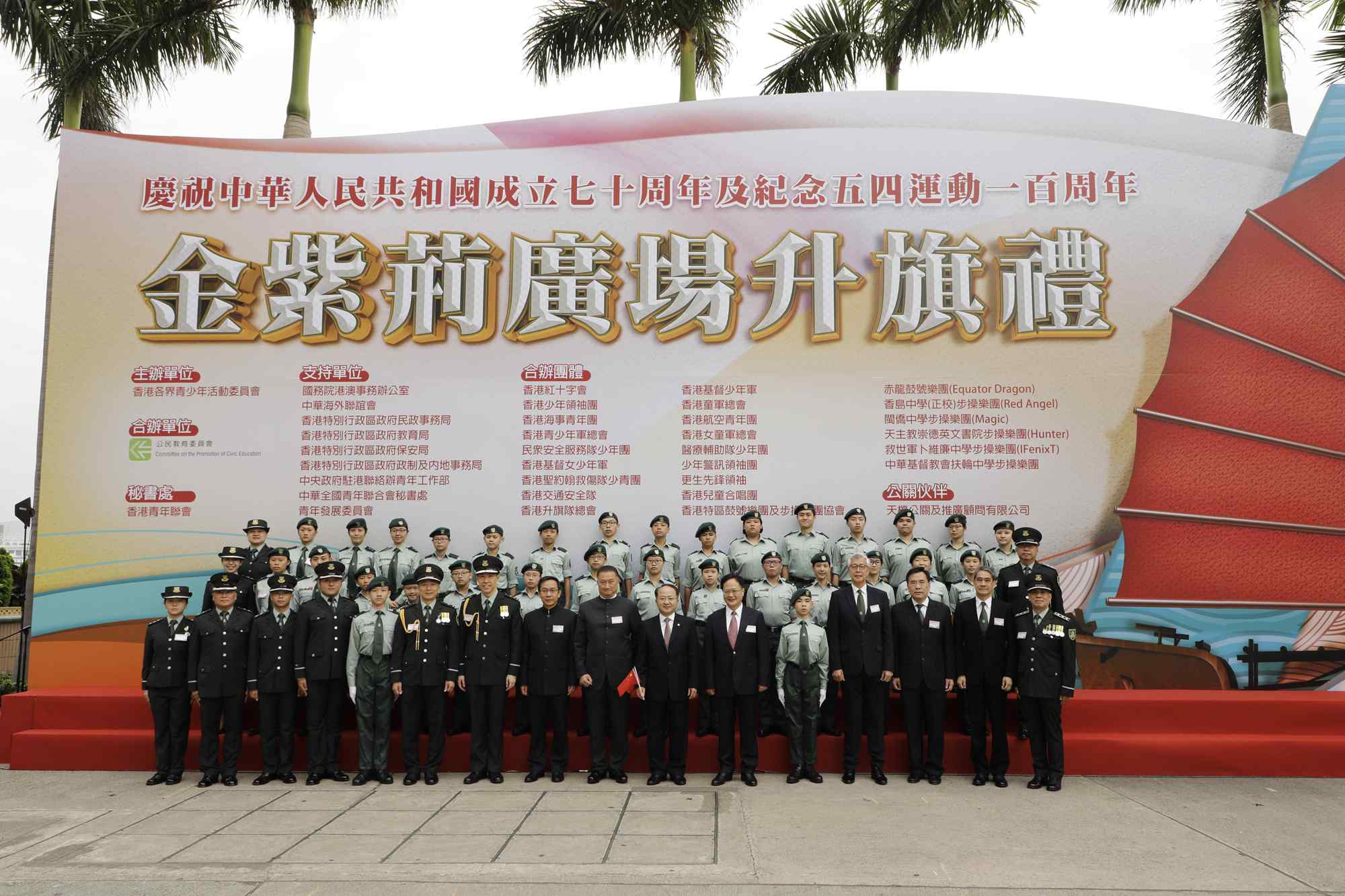 香港14家青少年制服團體及少年警訊、更生先鋒等組成升旗隊、護旗隊、銀樂隊,奏唱國歌,升國旗區旗,並在國旗下共同宣讀《五四宣言》,重溫愛國、進步、民主、科學的五四精神。全港32家中小學和相關青年團體的2000多名青年學生參加。