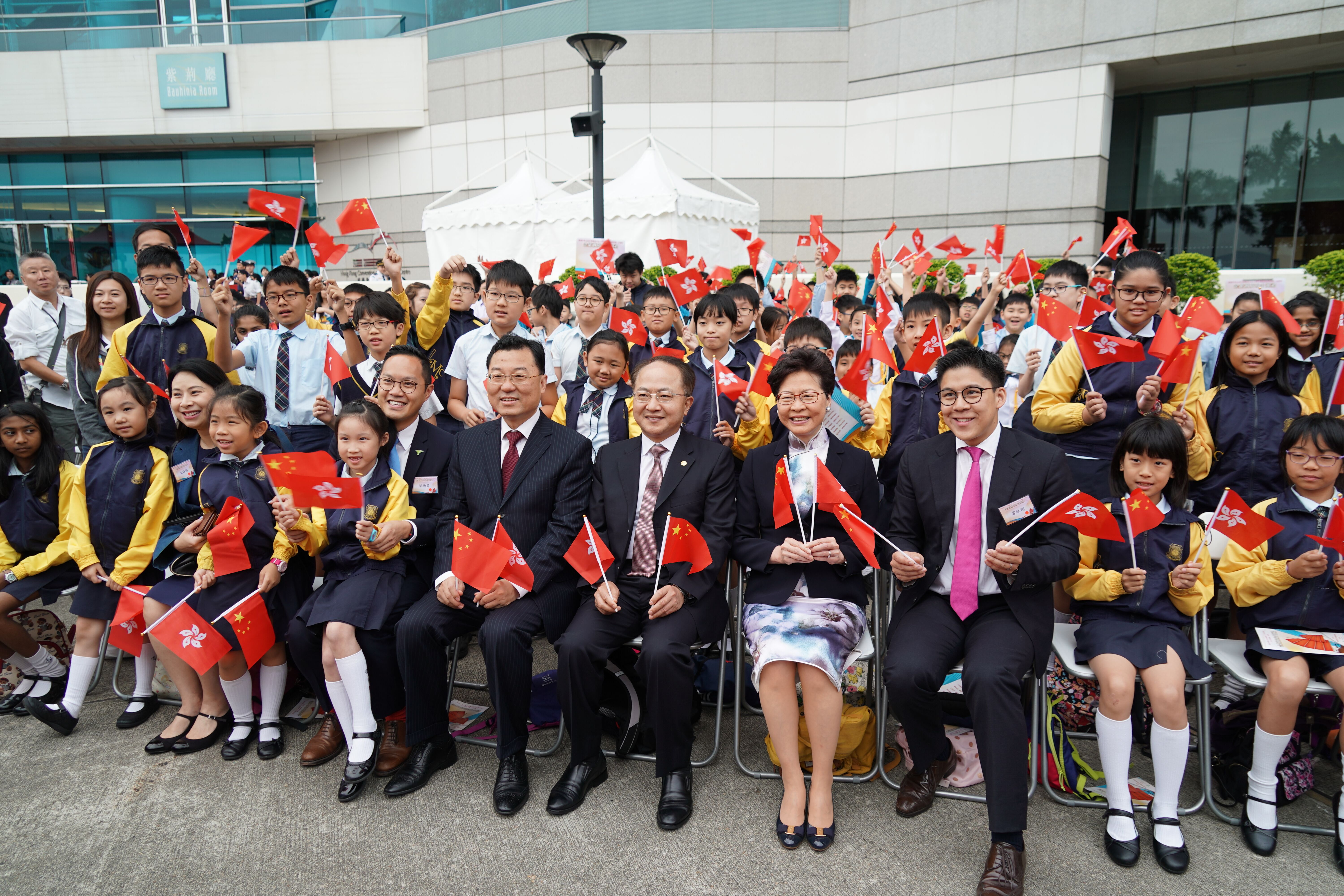 主禮嘉賓與現場學生互動。(圖片來源:中央政府駐港聯絡辦)