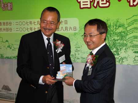 崇基學院董事會主席郭志梁頒發活動紀念品給王志民副秘書長