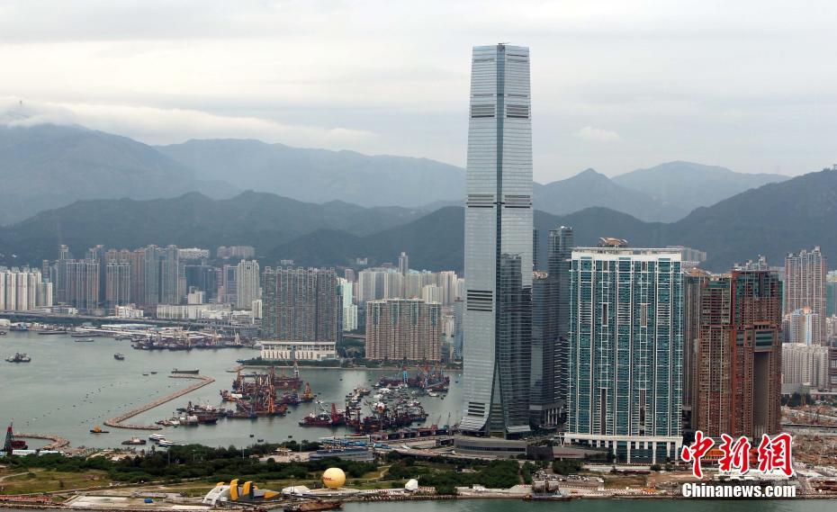 香港環球貿易廣場樓高118層,目前為全球第11高、為全香港最高的建築物。(中新社記者 洪少葵 攝)