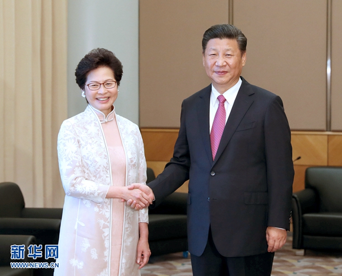 國家主席習近平1日上午在香港會見了剛剛就職的香港特別行政區行政長官林鄭月娥。