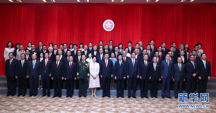 7月1日上午,國家主席習近平在香港特別行政區行政長官林鄭月娥陪同下,會見香港特別行政區新任行政、立法、司法機構負責人。 新華社記者 鞠鵬 攝