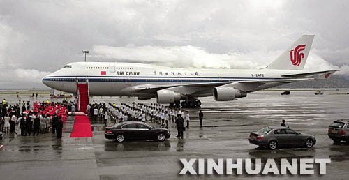6月29日11時32分,中共中央總書記、國家主席、中央軍委主席胡錦濤乘專機抵達香港。新華社記者周磊攝