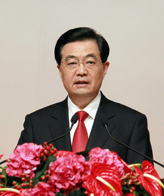6月30日,國家主席胡錦濤出席香港特別行政區政府歡迎晚宴並講話。 新華社記者鞠鵬攝