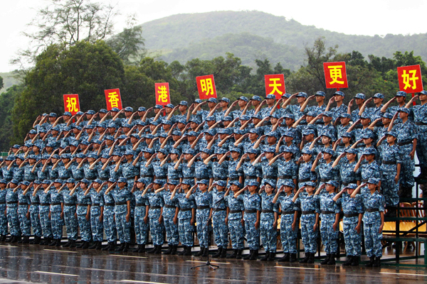 學員合唱軍歌。(圖片來源:中央政府駐港聯絡辦網站)