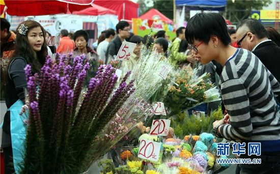 1月25日,市民在年宵花市參觀。當日,為期6天的香港年宵花市在維多利亞公園開鑼。花市內處處花團錦簇,吸引大批市民前往選購鮮花等賀年物品,迎接農曆新年。新華社記者李鵬攝