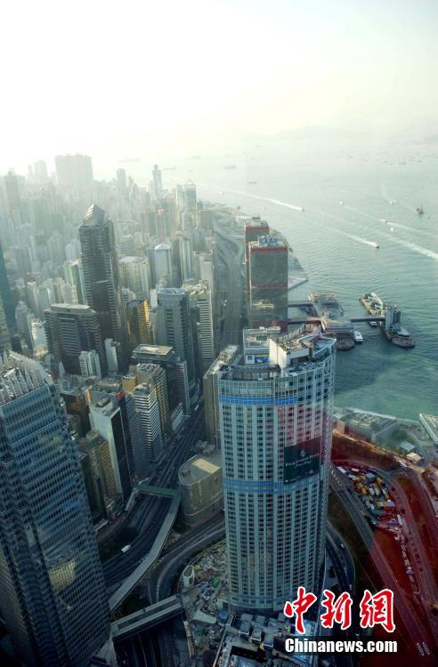 從香港中環高處拍攝的高樓大廈如雨後春筍。香港的面積只有1106平方公里,當中已發展土地少於四分之一,而人口則逾730萬,已發展土地的人口密度每平方公里達27330人。在地少人多的情況下,向高空發展,至今擁有超過1300座摩天大樓,冠絕全球,大大拋離緊隨其後的紐約(約730座)和東京(約490座)。(中新社記者 洪少葵 攝)