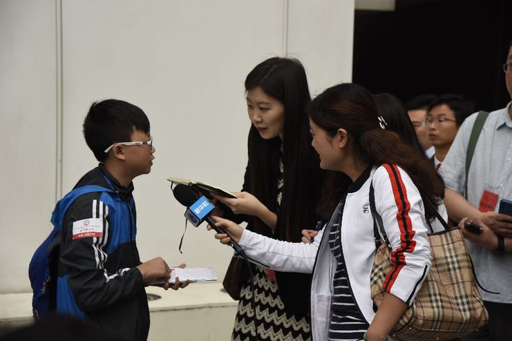 參觀市民在我辦門口接受記者採訪。(圖片來源:中央政府駐港聯絡辦)