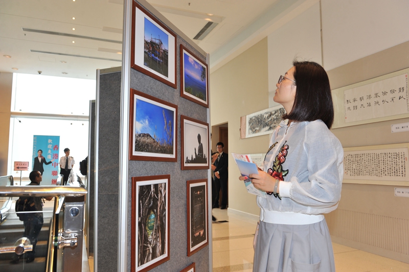市民欣賞我辦員工書畫攝影展。