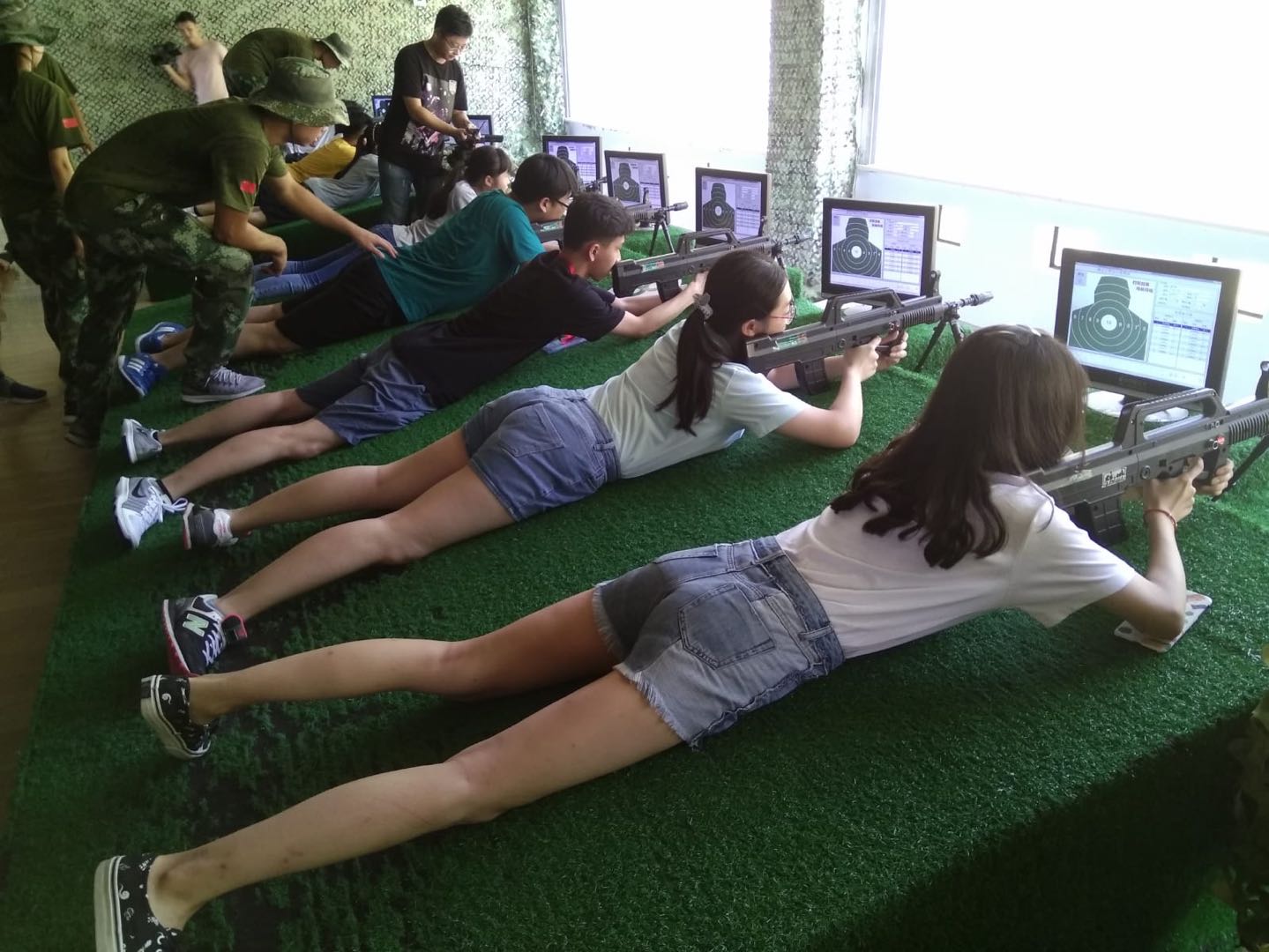 香港青年在杭州(國際)青少年洞橋營地體驗射擊。