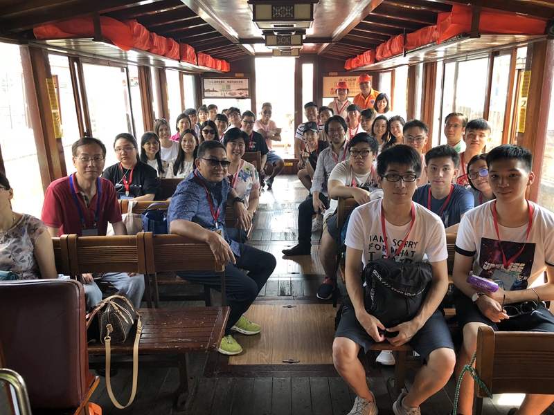 杭州團青年乘船游覽西湖。