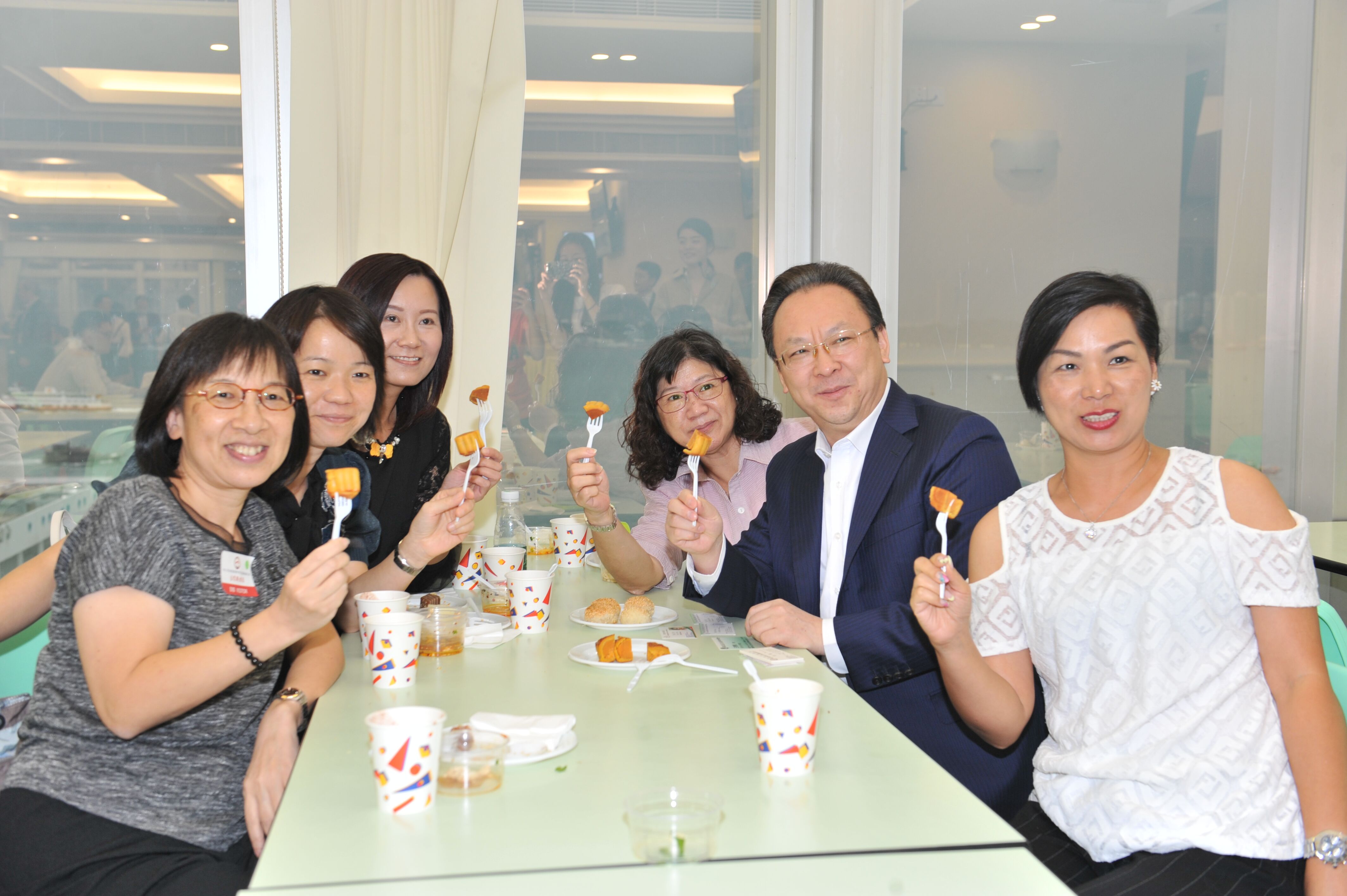 來賓在8樓員工餐廳與譚鐵牛副主任自拍留影。(圖片來源:中央政府駐港聯絡辦)