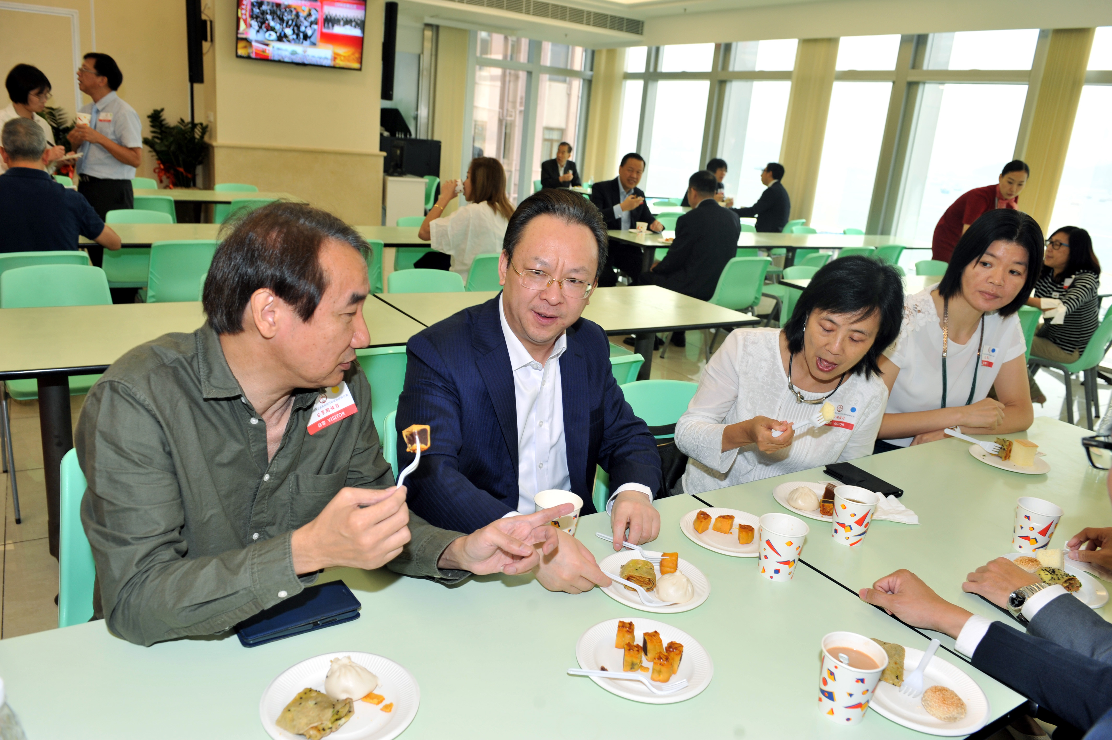 譚鐵牛副主任在8樓員工餐廳與來賓交流。(圖片來源:中央政府駐港聯絡辦)