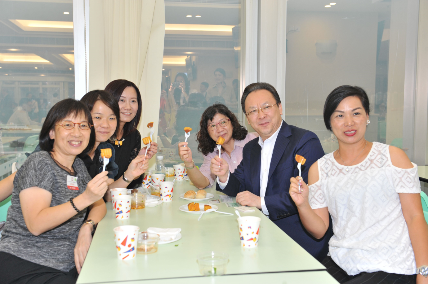 譚鐵牛副主任與來賓一起品嘗我辦自製月餅,提前致以中秋節問候。(圖片來源:中央政府駐港聯絡辦)