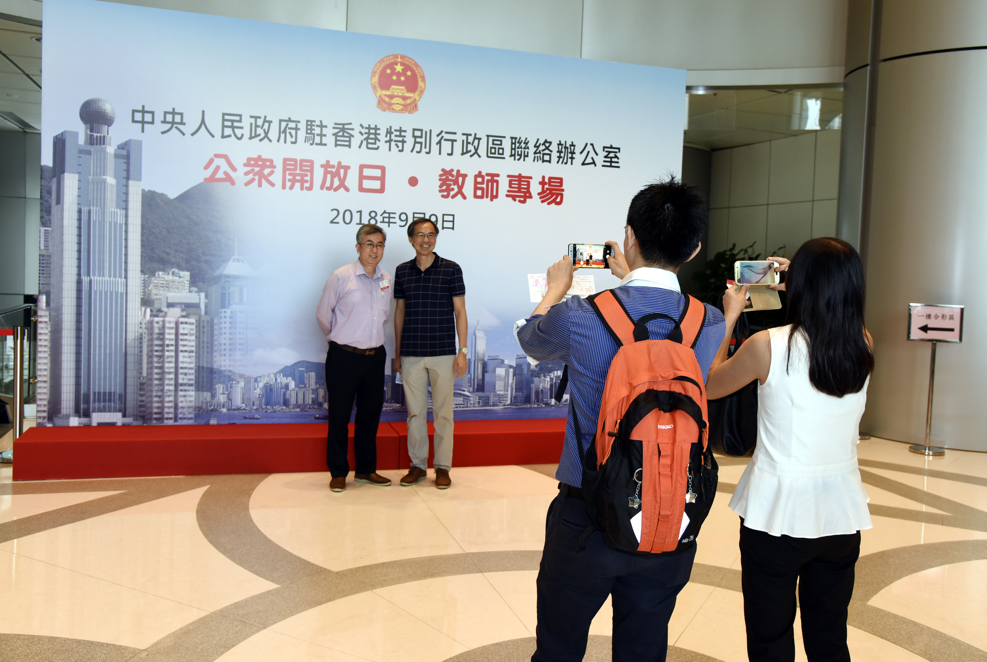 來賓在我辦西式會客廳合影。(圖片來源:中央政府駐港聯絡辦)