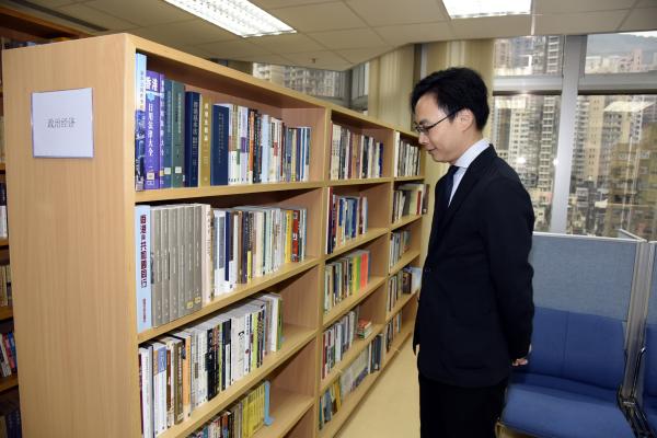 來賓參觀我辦圖書室。(圖片來源:中央政府駐港聯絡辦)