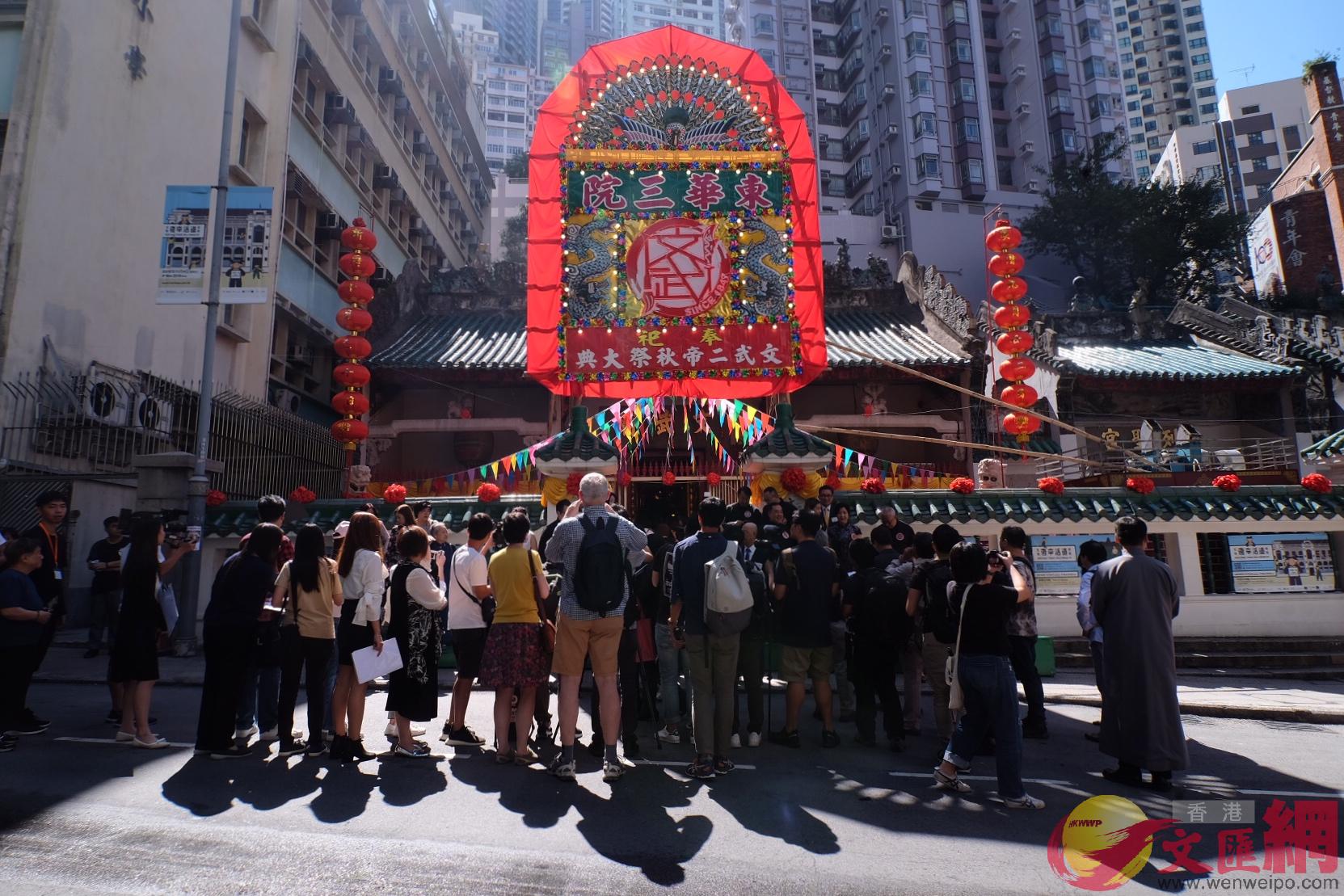 香港東華三院10月30日在文武廟舉行每年一度盛大的秋祭典禮,吸引不少民眾參加。主辦方表示,中國以農立國,自古以來,每逢秋季百谷豐收之際,均舉行祭祀活動。主辦方秉承傳統習俗,在文武廟這一香港法定古跡舉行秋祭典禮,酬謝文武二帝,為香港祈福。主禮嘉賓依照傳統穿上長袍玄褂行禮,儀式莊嚴隆重,進行的祭禮包括降神禮、初獻禮、恭頌祝禮、亞獻禮、三獻禮、望燎禮及辭神禮。