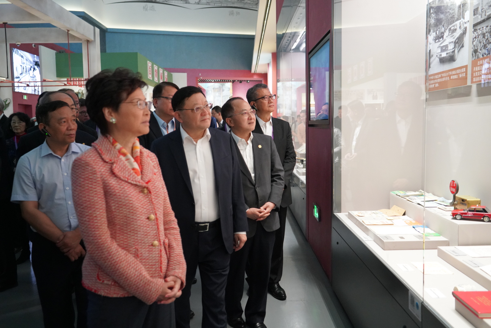 王志民主任與香港特區行政長官林鄭月娥、深圳市委書記王偉中等參觀「大潮起珠江——廣東改革開放40周年展覽」。(圖片來源:中央政府駐港聯絡辦)