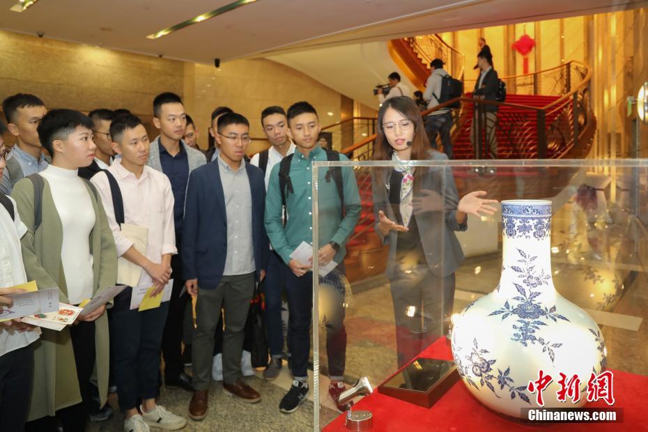 11月24日,工作人員向來賓講解外交部駐港特派員公署大廳陳列的中國歷史文物,讓來賓感受祖國歷史的博大精深。當日,中華人民共和國外交部駐香港特別行政區特派員公署舉辦慶祝改革開放40周年大型開放日活動,邀請來自逾50所學校的1800多名師生及青年參加,以幫助其了解中國傳統文化及外交故事。中新社記者 謝光磊 攝