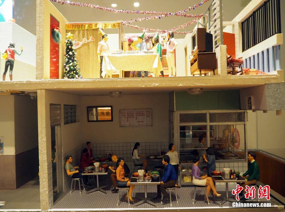 11月26日,模型微妙地展現香港舊日溫馨歡樂的聖誕氣氛。聖誕節前夕,香港時代廣場舉辦「香港微妙聖誕場景」,再現六組八十年代香港聖誕的街景人情。中新社記者 洪少葵 攝
