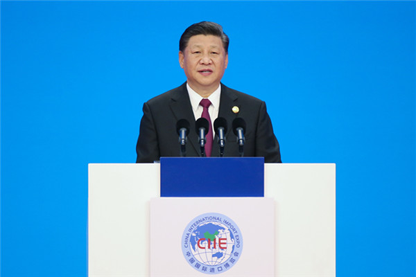 11月5日首屆中國國際進口博覽會在上海開幕。國家主席習近平出席開幕式並發表題為《共建創新包容的開放型世界經濟》的主旨演講。(圖片來源:新華社)