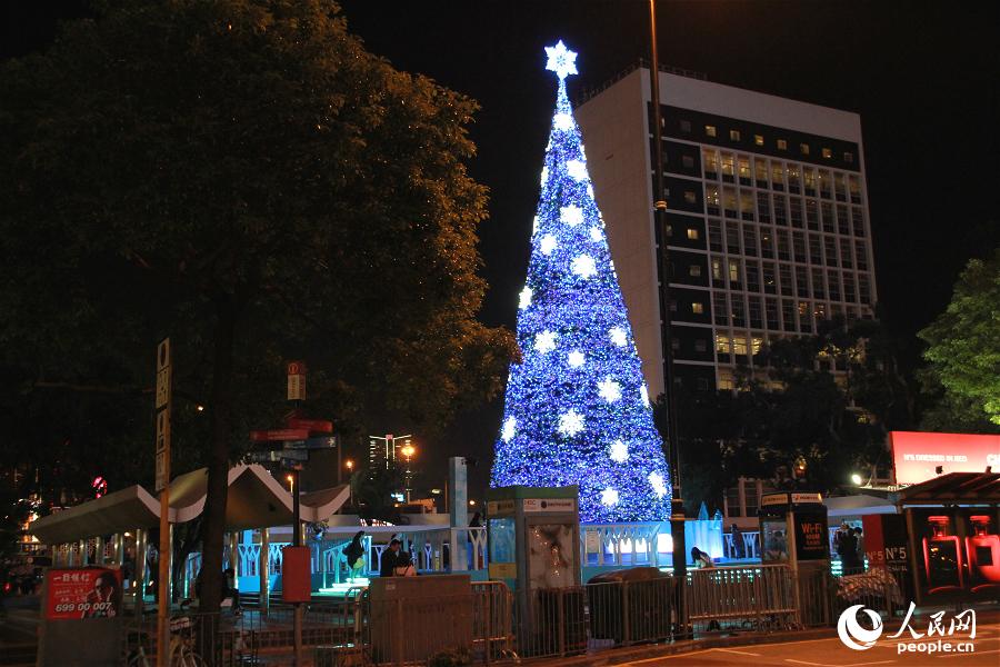 香港街頭點亮聖誕裝飾 節日氣氛漸濃