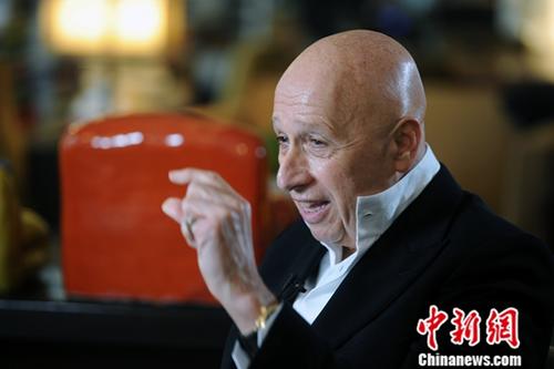 蘭桂坊集團主席盛智文對中新社記者談及親身經歷中國改革開放40年來的變化。中新社記者 譚達明 攝