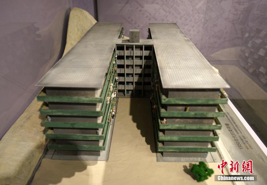 1954年的美荷樓是石硤尾邨首8座徙置大廈之一,原稱H座,外形像英文字母「H」。圖為1950年代的美荷樓模型。中新社記者 張煒 攝